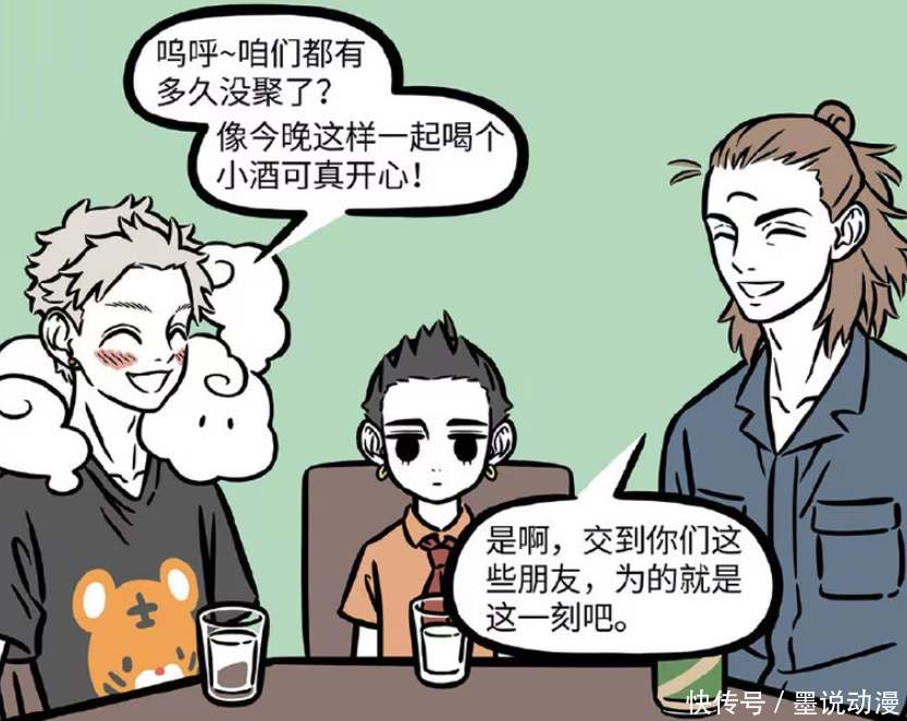 回忆落拓之后,画面回到目下。此时杨戬跟孙悟空、哪吒小聚。孙悟空看来又喝了咖啡,又有醉咖啡的情况。不外目下孙悟空的情况倒是不太严重,他示意能够像目下这样小聚,如故挺可以。哪吒倒是莫得喝酒或者咖啡,看杯子内部的东西,应该是牛奶一类。