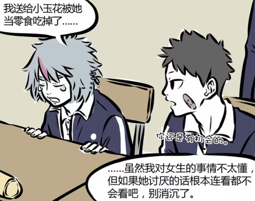 《非东说念主哉》漫画版,哮天在高中时间就照旧很心爱小玉,虽说有本能原因,但哮天照旧实打实长途过,正本思要借着玫瑰花表白,但是最终失败。至于哮天的同桌,嘴上说不懂那些女生,但女东说念主缘超好。