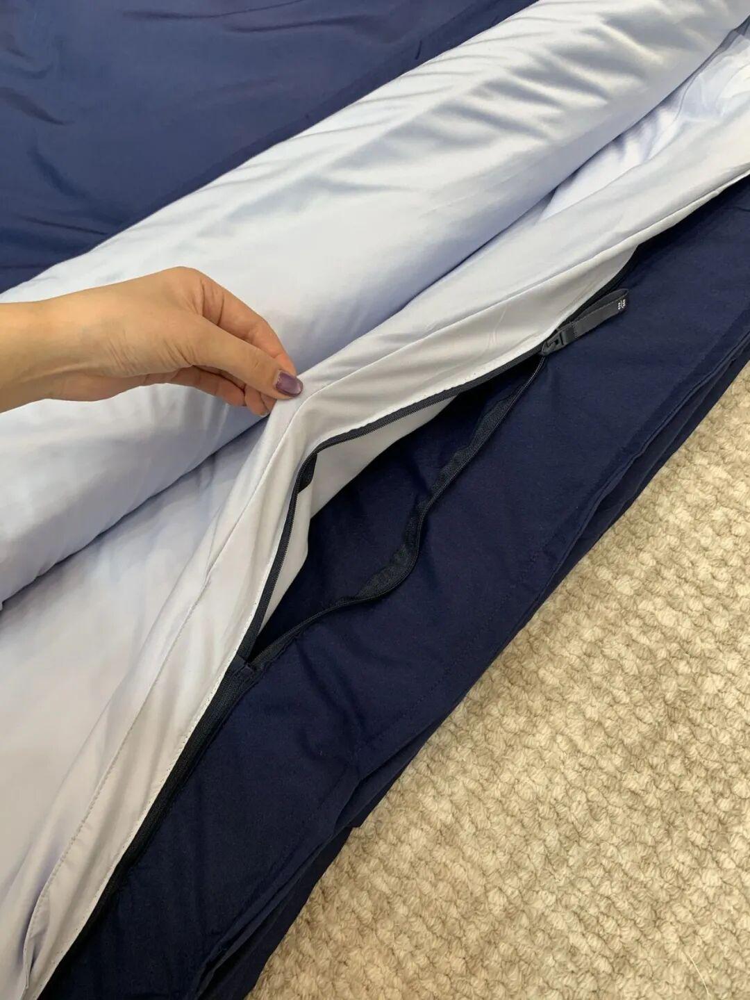 冬天盖的被子要么太厚,闷得睡不着,要么太薄,冻得瑟瑟发抖;夏天盖的被子又太闷,容易出汗;思洗被子又太贫穷,套被套、拆被套,竟然太累了!