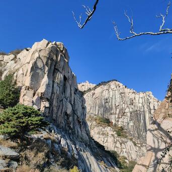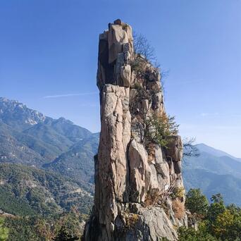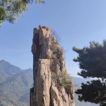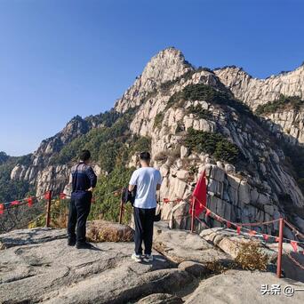 这即是泰山扇子崖,纵眺孤峰独矗,陡峻难攀,登顶者无不人心惶惶。去扇子崖,需要早上8点之前,从天际村进山,晚了就不让进了。门口或有责任主说念主员斟酌,搜检有无佩带火种。