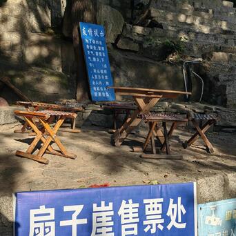 扇子崖孤峰独矗,形如扇面,直插云天,至极陡峻,近乎垂直。登顶需要沿天梯(铁梯),收拢铁链,钢筋,当作并用,震惊及恐高者慎攀。