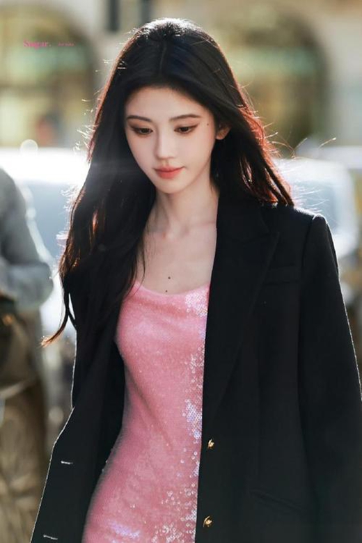 算作初次亮相米兰时装周的中国艺东说念主,鞠婧祎的推崇号称 “教科书级破圈”。在 G 社无修生图镜头下,她未施粉黛的皮肤白到发光,巴掌大的脸被浓密发量包裹,孑然玄色廓形西装搭配厚底小白鞋,酷飒气场与米兰的欧式成就无缺适配。而另一套粉色吊带长裙造型则已而切换立场,珍珠配饰点缀其间,贵气令嫒范儿绝对,被网友戏弄 “是从对峙画报里走出来的好意思东说念主”。
