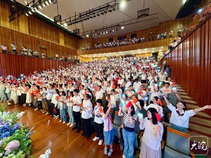 大皖新闻讯 “我爱你中国,可爱的母亲,我为你与陨泣,也为你自傲……”10月1日,当《我爱你中国》的前奏响起,合肥硕剧院近千名世界皆声大叫,他们用最诚挚的歌声为故国母亲庆生,手中挥舞的国旗汇成一派流动的红色海洋。