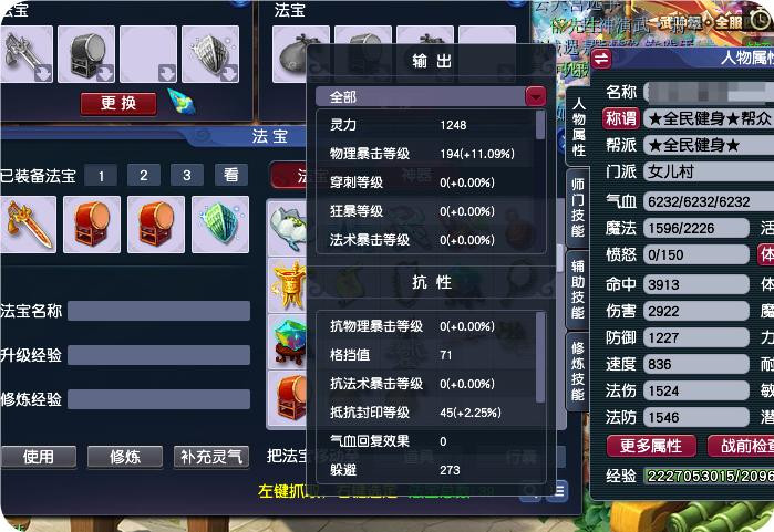 前排齐是双爆速率,玉是双法爆 打十八门天降之类的,输出法宝一齐带满,我最理想的情况之下,是不带加快度法爆,然后四个法系齐带血魄元幡。