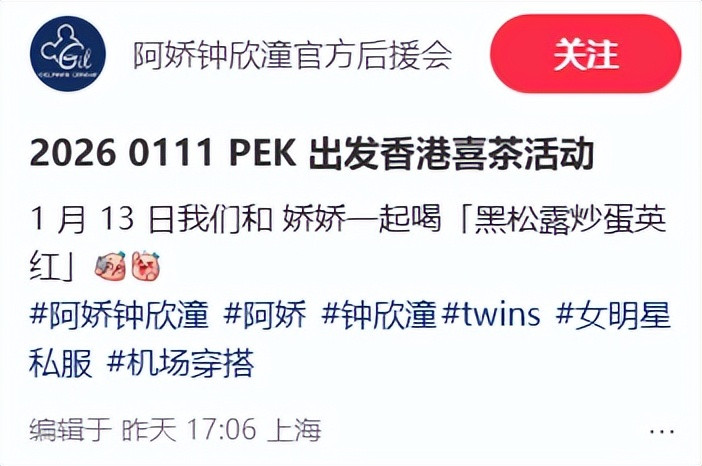 2026年1月11日,阿娇荒僻现身机场,赶赴香港进入步履。