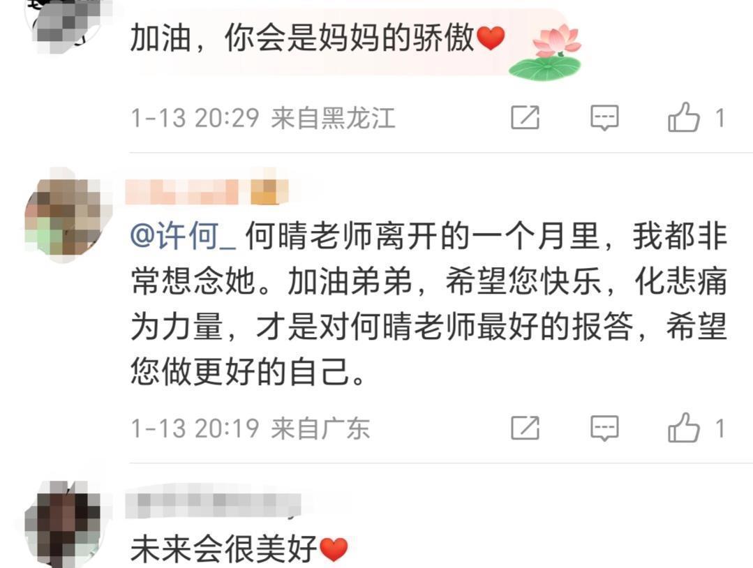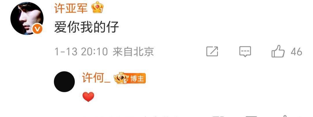 长信发出后,父亲许亚军第一本领转发,并在指摘区留住直爽的“爱你我的仔”,许何则以爱心恢复。