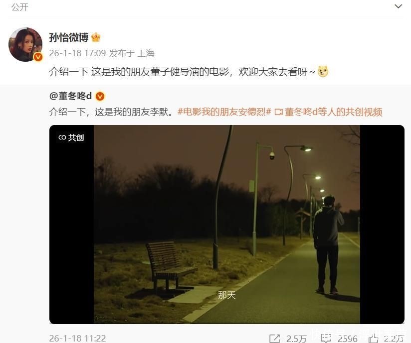 2. 2026年1月18日上昼,董子健在酬酢平台发布一则短视频,为他自编自导并参演的新片《我的一又友安德烈》进行宣传造势。