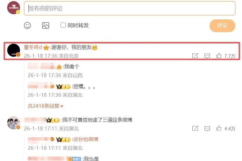 10. 约半小时后,董子健现身挑剔区留言:“谢谢你,我的一又友。”短短一句话,却让多量网友反复阅读、细细回味。