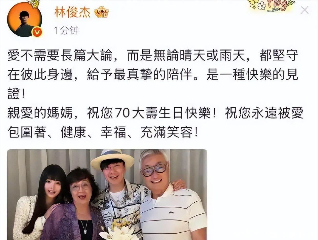 最近林俊杰发了个动态,说我方带着女一又友回家吃饭,幽静让家东谈主见见,还配了张全家东谈主的合照。