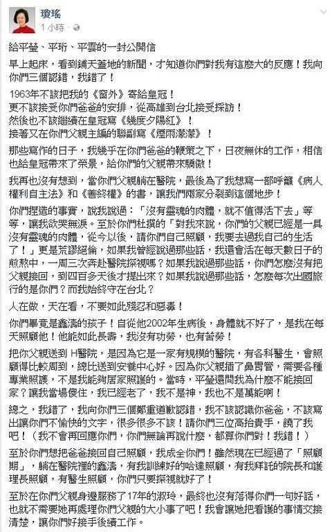 那时林婉珍在4万多字的文稿中,至少有四分一的篇幅讲到琼瑶,直言“婚配里最大的问题,等于琼瑶。”