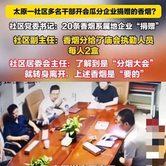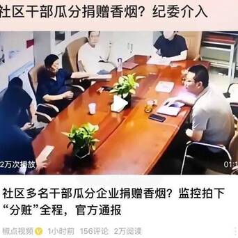 【社区多名干部现场“分赃”被逮个正着,到底捐赠已经索贿?】网传视频暴露,数东说念主围坐在一张会议桌前说谈笑笑,其中一东说念主向其他东说念主交替分发烟草。